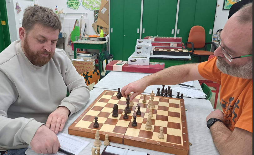 V oddílovém derby družstev céčka s béčkem Šachů Vyškov na 5. šachovnici slavil výhru hráč béčka Lukáš Kropáč nad vycházejícím talentem Danielem Skýpalou, dvojčata Snopkovi Mirek a Honza neprohráli a hráči céčka Milan Čermák a Adam Ulrich bodovali naplno, stav 3,5-1,5.
